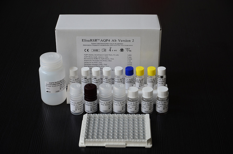 水通道蛋白抗体(AQP4 Ab)检测试剂盒(酶联免疫法)使用了生物素化AQP4作为检测抗原,利用酶联免疫检测法(ELISA)可以特异地检测人血清中的水通道蛋白抗体(AQP4 Ab)。